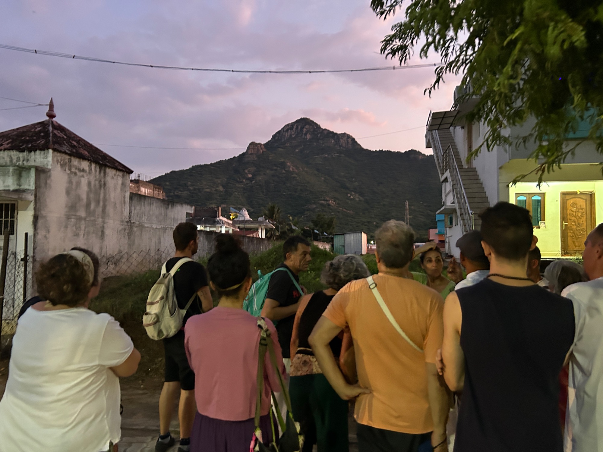 Hacer la pradakshina, la caminata sagrada de 14 km alrededor de Arunachala es una de las prácticas espirituales más profundas y veneradas del sur de la India. Se considera como un acto de rendición del ego y una práctica de purificación kármica.